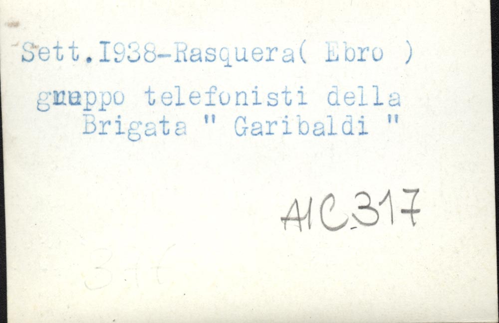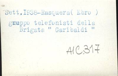 [Dattiloscritto] Sett 1938- Rasquera- (Ebro) Gruppo telefonisti della Brigata "Garibaldi" |